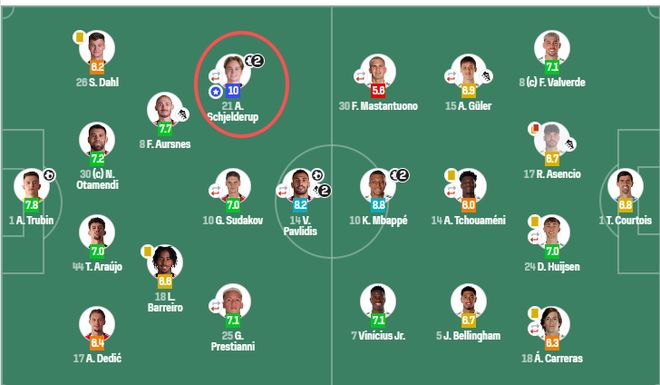 2026年1月29日,欧冠小组赛末轮本菲卡 4-2 逆转皇家马德里,谢尔德鲁普梅开二度,当选全场最佳球员,一战成名。他在犀利突破令皇马防线苦不堪言,第54分钟的这粒标志性内切射门更是令人印象深刻。赛后他的评分更是满分10分,也成功当选本轮欧冠最佳球员。